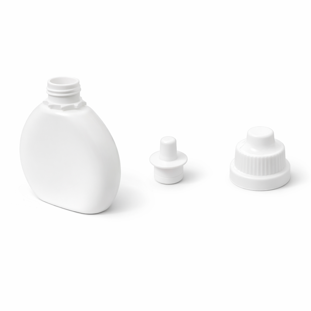 The AWM-07 is a 60 ml white oval plastic bottle engineered for secure storage and controlled dispensing of liquid products. Supplied with a plug and single ring cap assembly, it provides reliable sealing performance for pharmaceutical, cosmetic, chemical, and industrial applications.